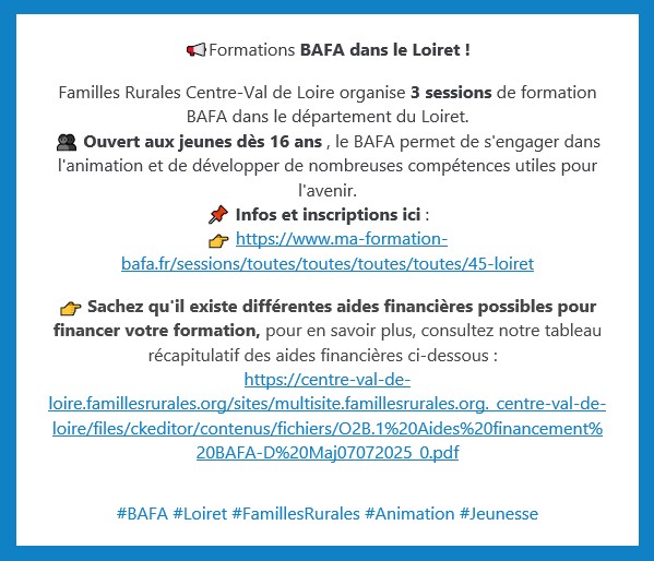 Mme THOMASSIN : 02 38 94 03 71 ou 06 09 80 22 11